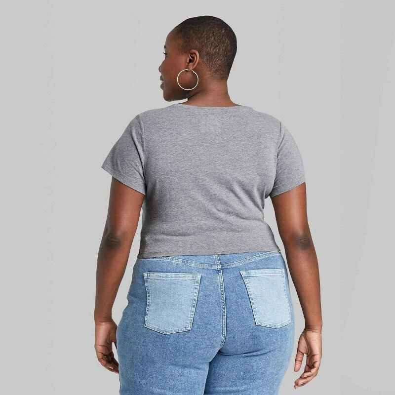Wild Fable Women 039 S Size 2x Short Sleeve V Neck Cropped T Shirt Gray New Ebay